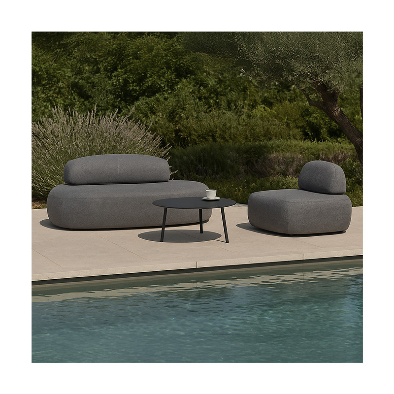 A ROCK egy prémium minőségű kültéri lounge szett, amely a kortárs olasz design letisztult eleganciáját és a magas szintű kényelmet képviseli. Harmonikus arányai és visszafogott formavilága természetes könnyedséggel illeszkedik a kert vagy a terasz környezetébe.
