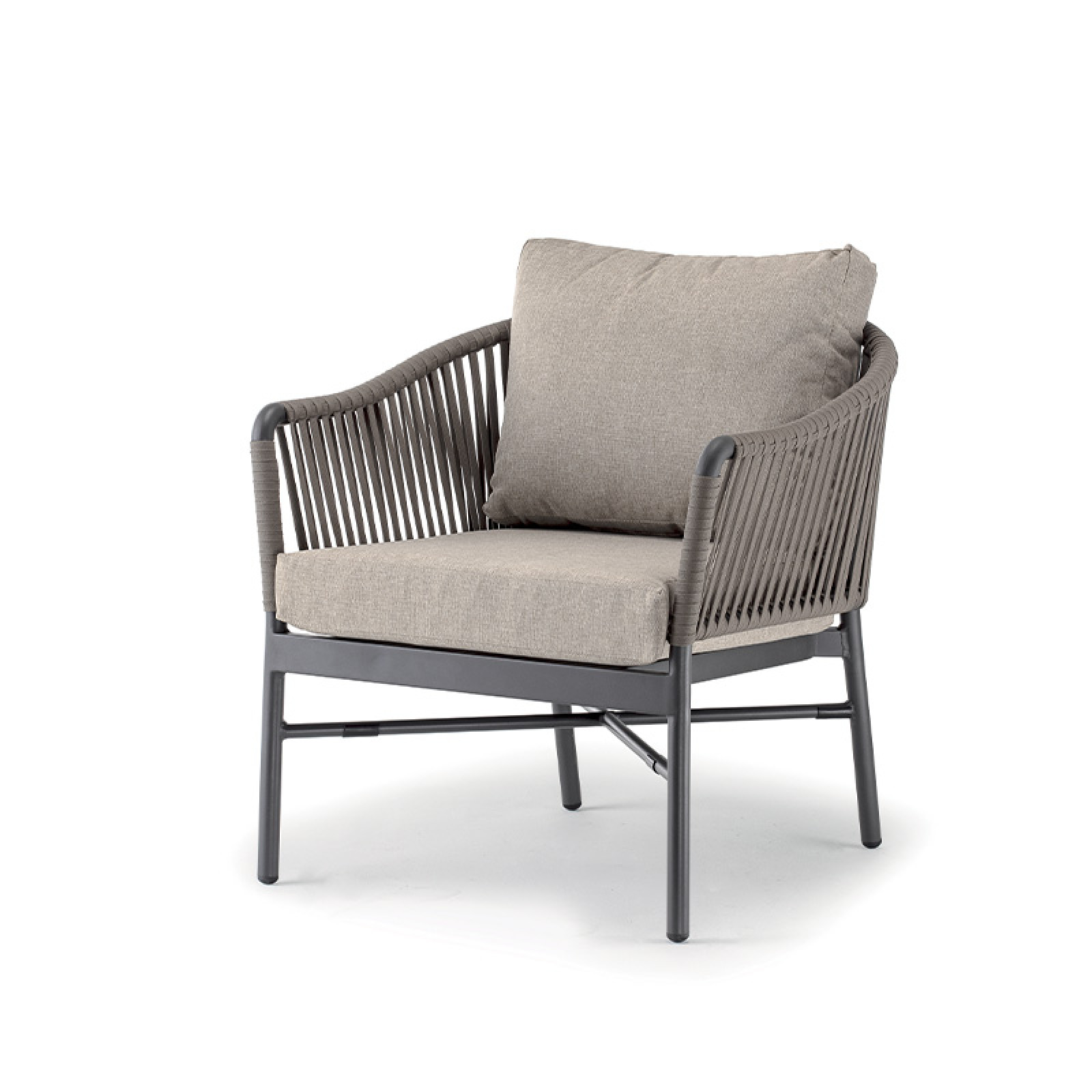 A SAMOS olasz tervezésű, prémium minőségű kerti ülőgarnitúra szett. A magas minőségű akril szövettel bevont párnák rendkívül tartósak, ellenállnak az UV-sugárzásnak és víztaszítóak. A bútorok háttámlája gumírozott akril kötélből készült, vázuk alumínium. A bútor exkluzivitását a minőségi anyaghasználat és az egyedi formaterv párosa adja.