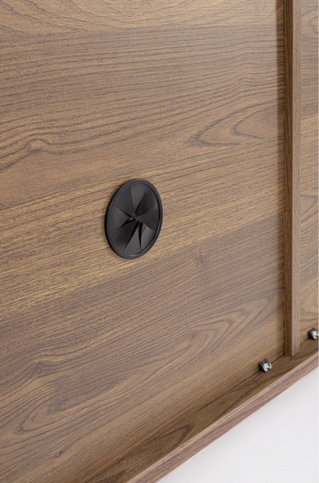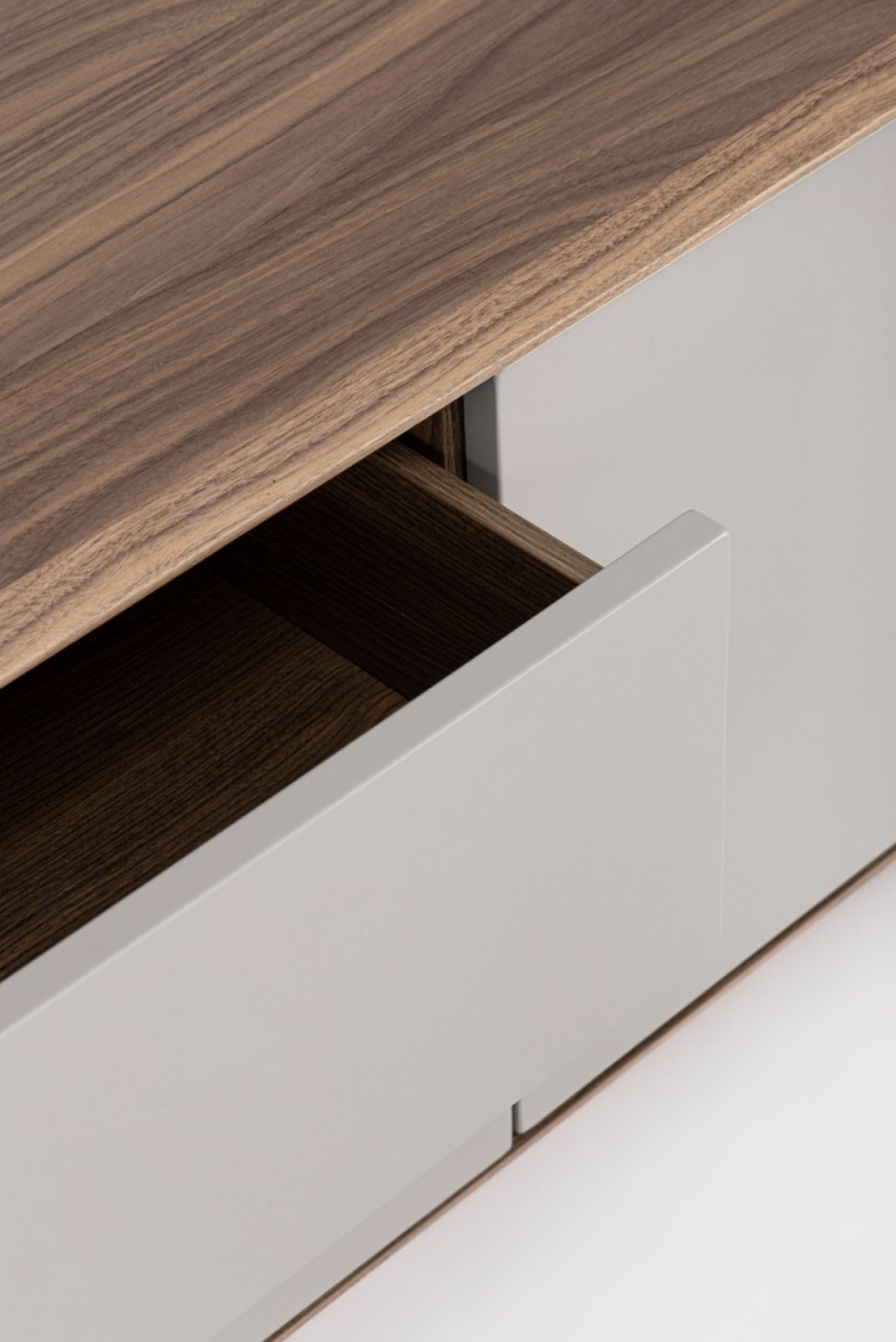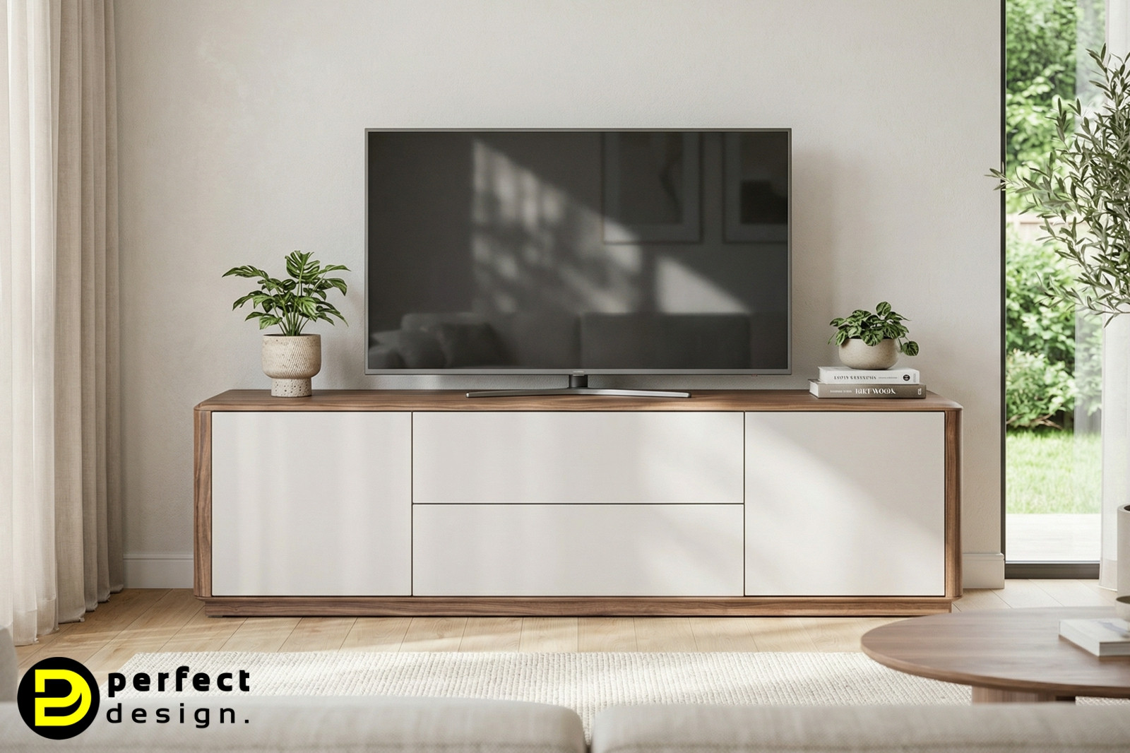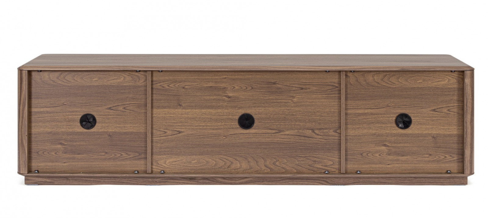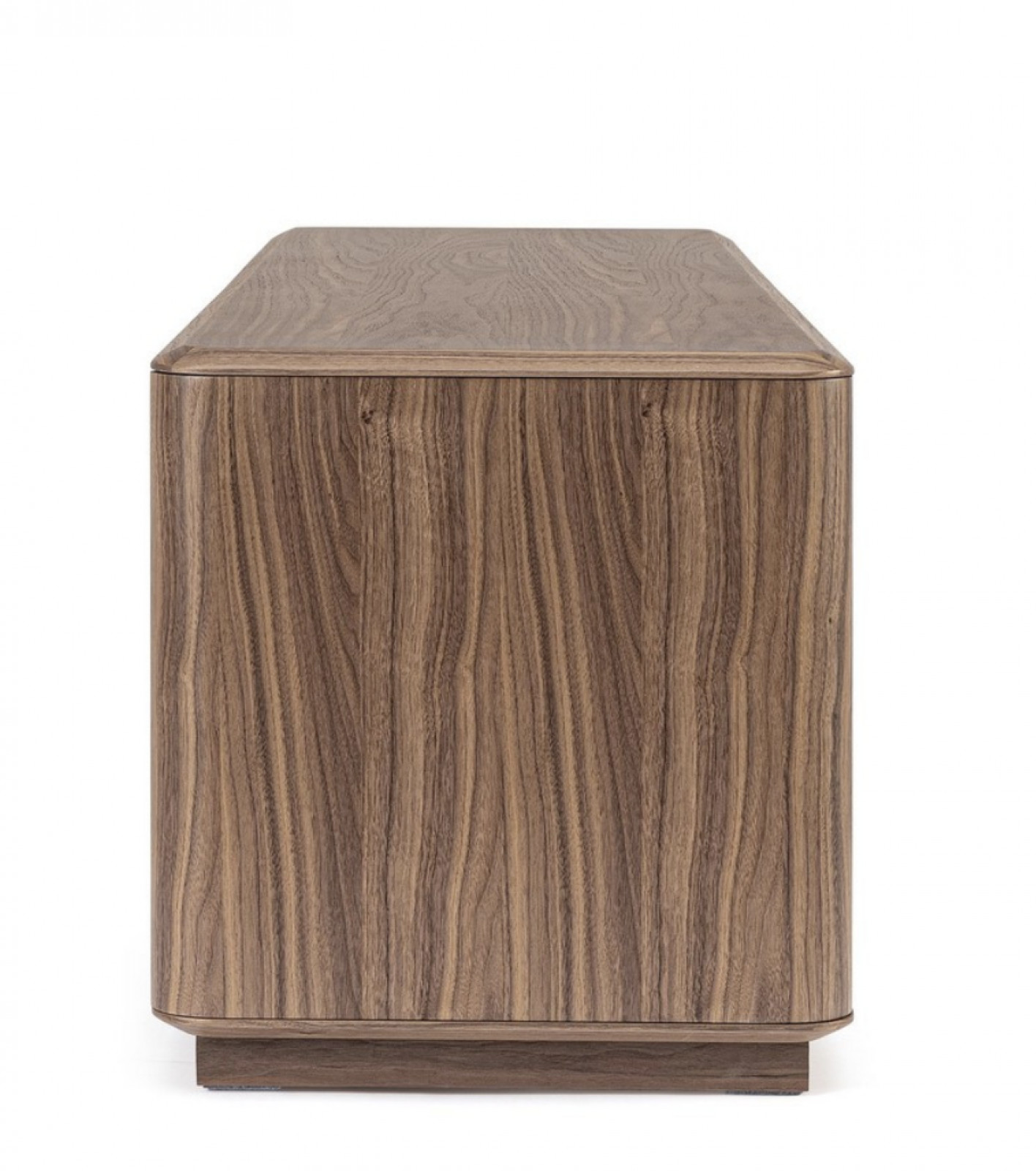 A SERENO TV-szekrény a modern elegancia és a természetes anyagok harmonikus találkozása. A korpuszt diófával furnérozták, amely mély, meleg tónusával és finom erezetével időtálló karaktert ad a bútornak. A természetes fa textúrája kifinomult kontrasztot alkot az ajtók letisztult felületével.