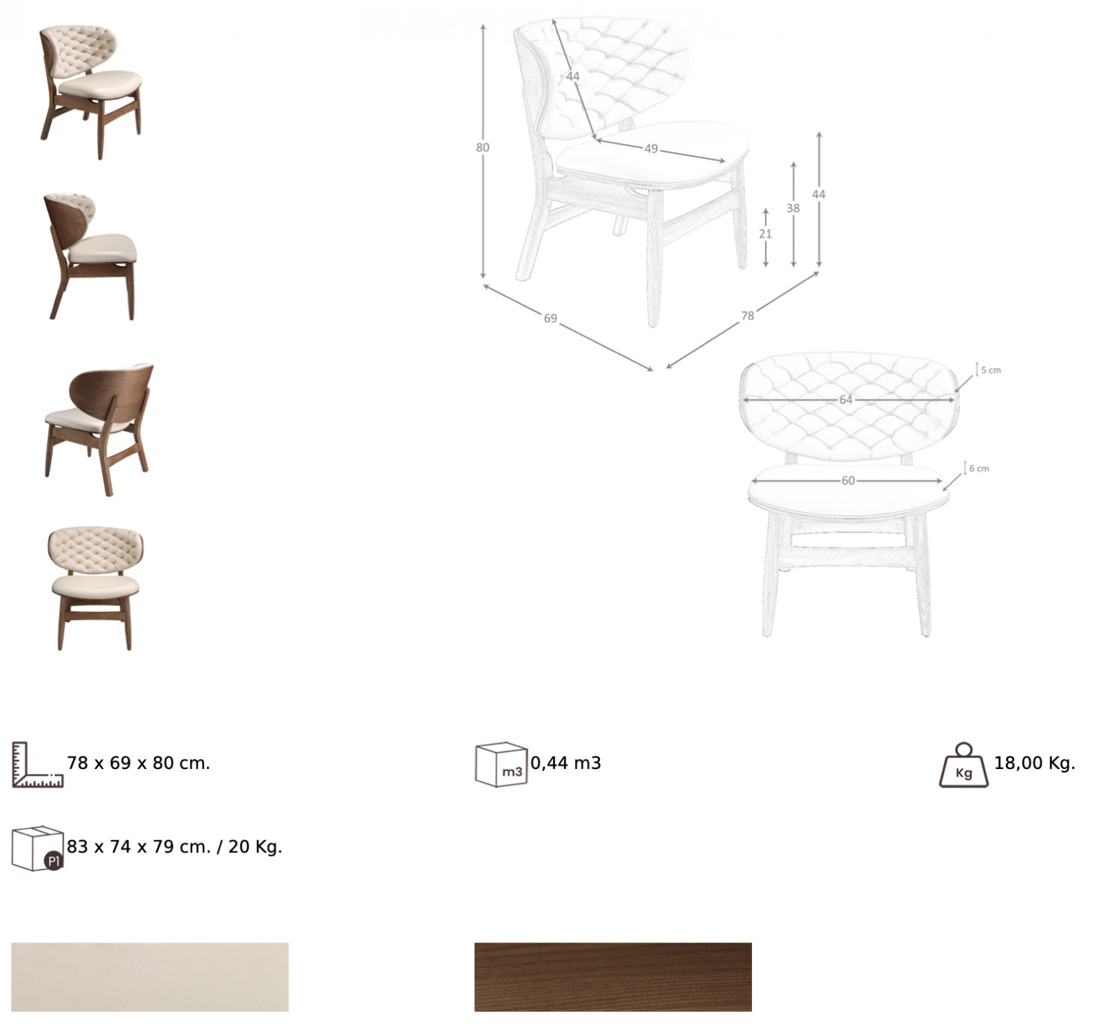 Méret: 78cm x 69cm x 80cm (szélesség x mélység x magasság)