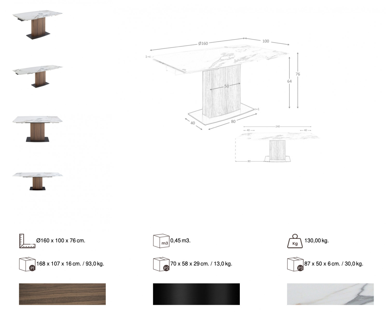 A SOLSONA asztal modern és stílusos. A márvány mintázatú kerámia asztallapot különleges kialakítású diófával furnérozott központi láb támasztaj alá. Az asztal modern eleganciája magával ragadja a tekintetet.