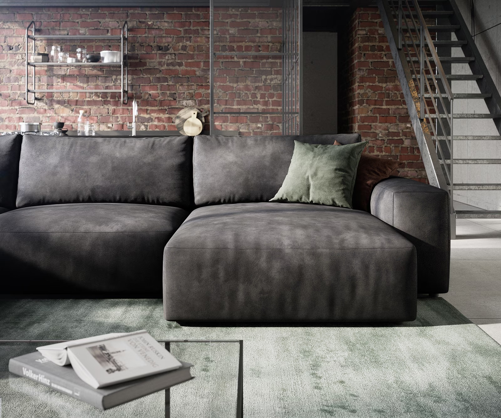 Az URBANO ülőgarnitúra a modern nappalik elegáns központi eleme. A kanapét bőrhatású mikroszálas kárpit borítja, amely vizuálisan a valódi bőr karakterét idézi, tapintásra mégis puhább és kellemesebb érzetet nyújt. Tartós, könnyen kezelhető felülete a mindennapi használat során is megőrzi igényes megjelenését.