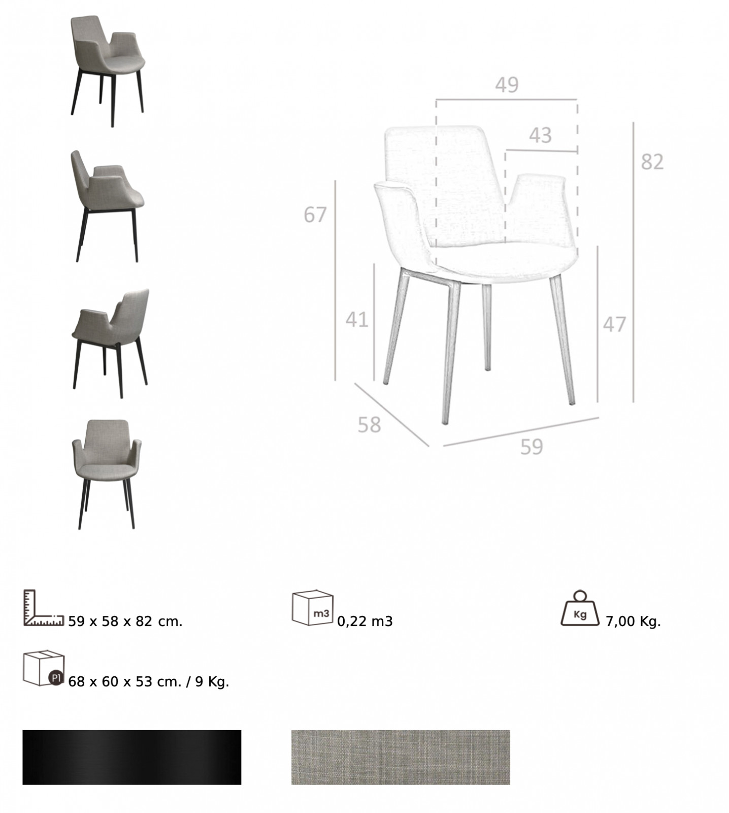 A VINUELA étkezőszék a kortárs design páratlan darabja. A különleges vonalvezetésű ülőfelületet magas minőségű szövettel borították a tervezők, melyet kecses fekete lábak hansúlyoznak.